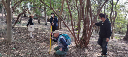 Mr. Hironobu Konishi, who is familiar with the plants of Yakushima, and Ms. Takako Azuma, a teacher at Yakushima High School, also participated. We all had a great time making a simple vegetation map and a tree position map at three characteristic points in the forest using the Brown-Blanke method.